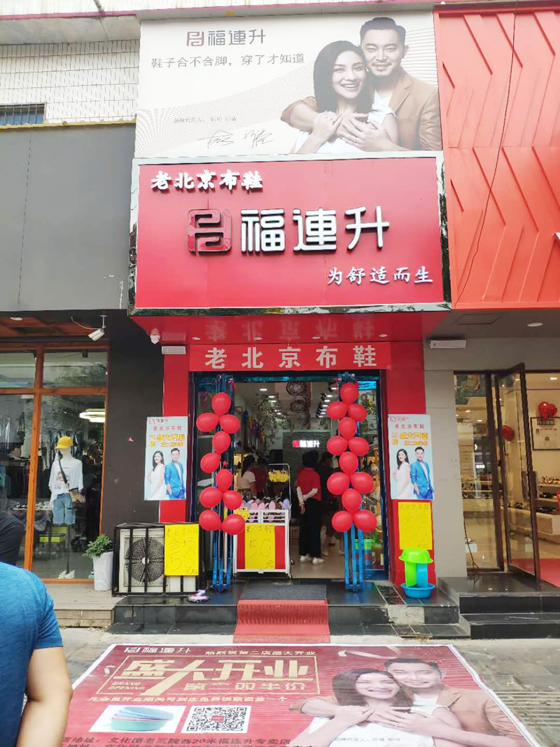 在此,福連升健康休閑中年鞋(原福連升(原福聯(lián)升)老北京布鞋)全體員工祝賀:福連升中年鞋河南尉氏文化路二店開業(yè)大吉、生意紅火、財源廣進!誠邀各地有志之士加盟合作,共享輝煌!